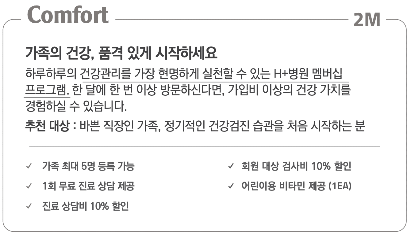 한 달 1회 이상 방문 시 가입비 이상의 가치 제공, 하루하루 건강을 현명하게 관리하는 멤버십