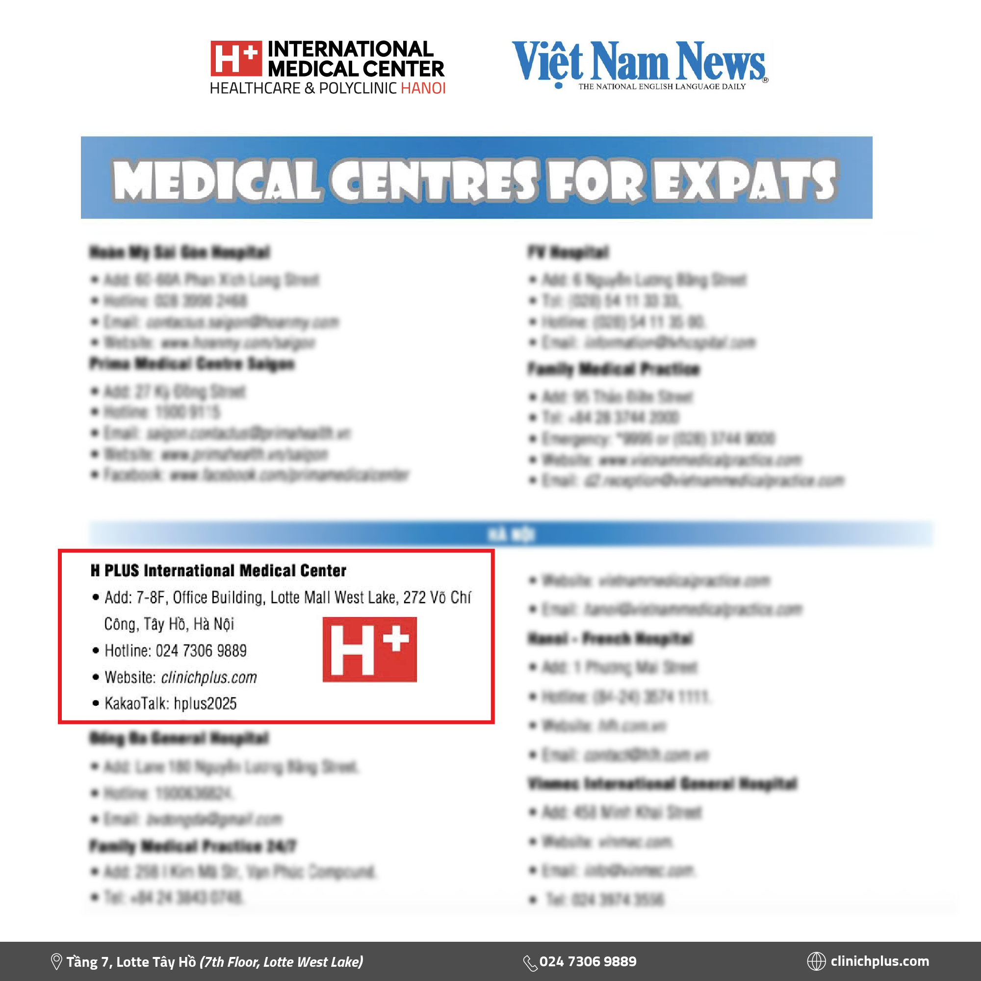 We’re thrilled to share that H PLUS International Medical Center was highlighted in the newest release of the Viet Nam News newspaper!