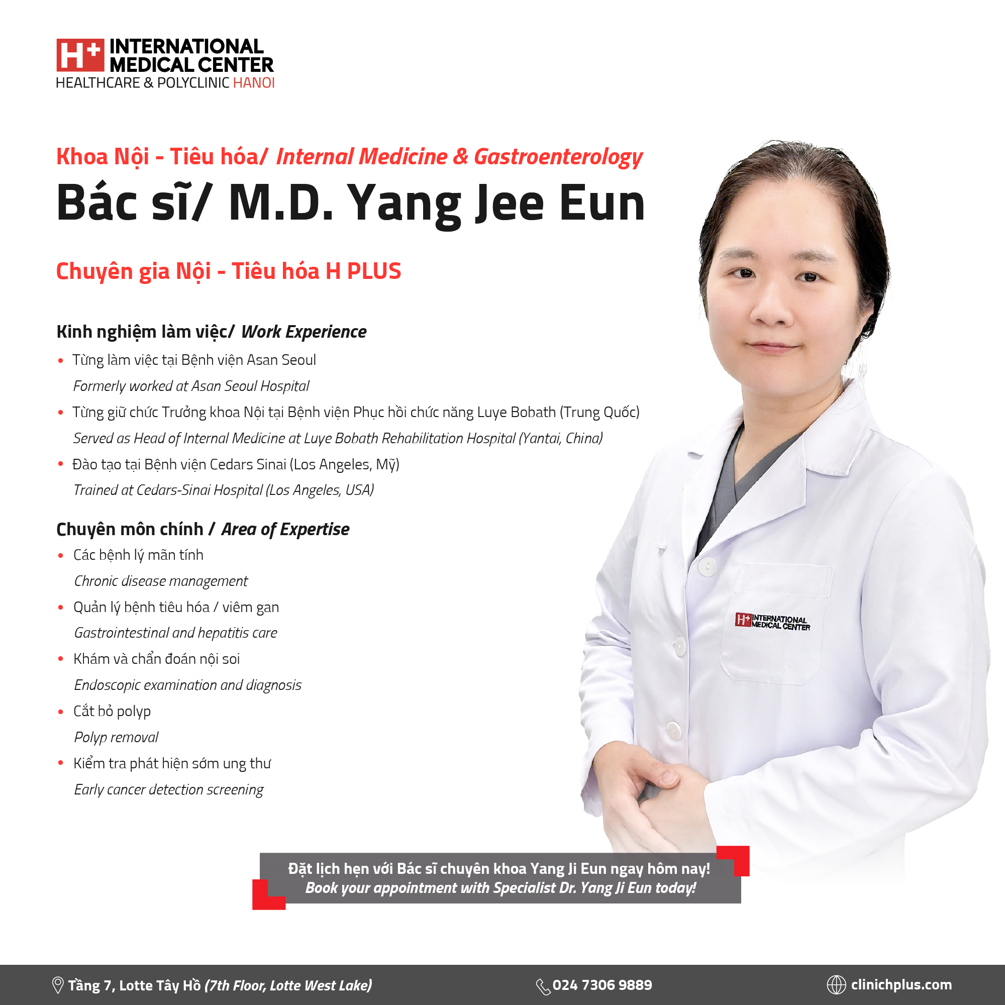 H PLUS International Medical Center is honored to introduce Dr. Yang Jee Eun, an Internal Medicine and Gastroenterology specialist with outstanding expertise and extensive experience from Korea.