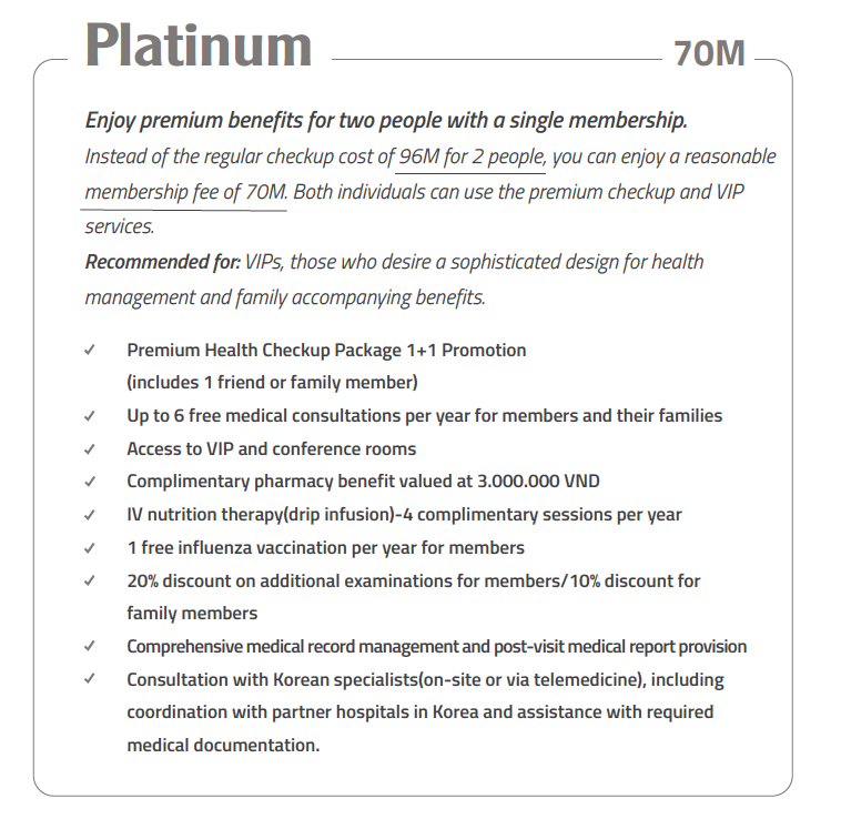 Exclusive premium health check-up and VIP service experience for two with Hanna’s membership.